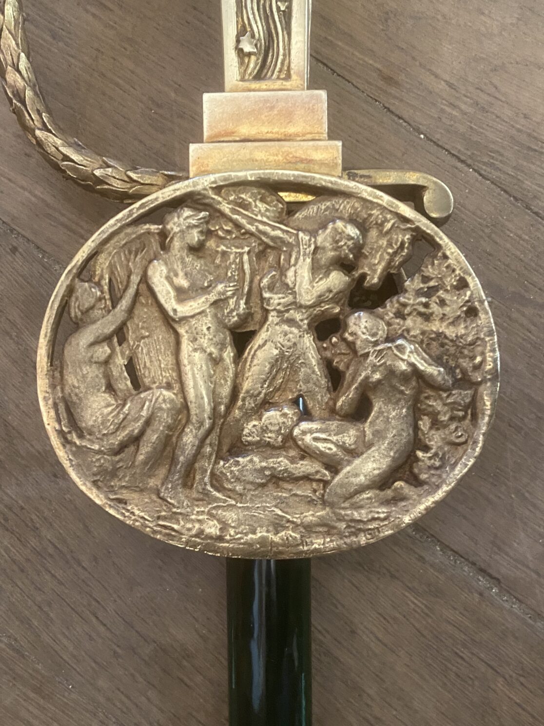 L’épée de Fernand Gregh est l’oeuvre du sculpteur Paul Landowski. La garde représente les 4 muses de la poésie : Polymnie, Euterpe, Calliope et Erato.